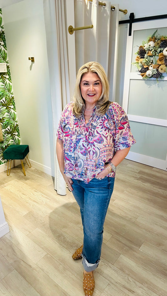 Our Tops & Layering collection features playful Blouses, Everyday Basics, and Statement Jackets that take you from casual to polished. Discover Sheer Button-Downs, Color Block Sweaters, and High Quality Tees perfect for transitioning between seasons. Layer over our Bodycon Dresses or tuck into your favorite Boutique Denim for an easy, elevated look.