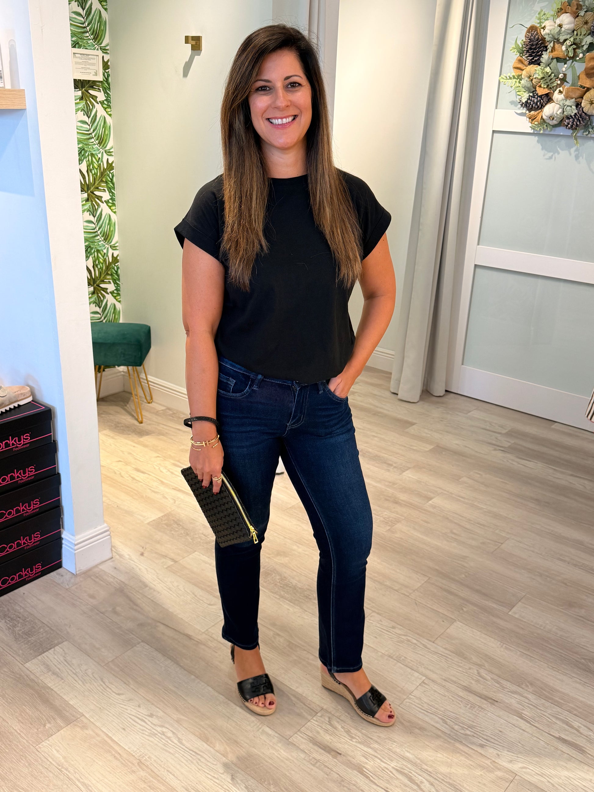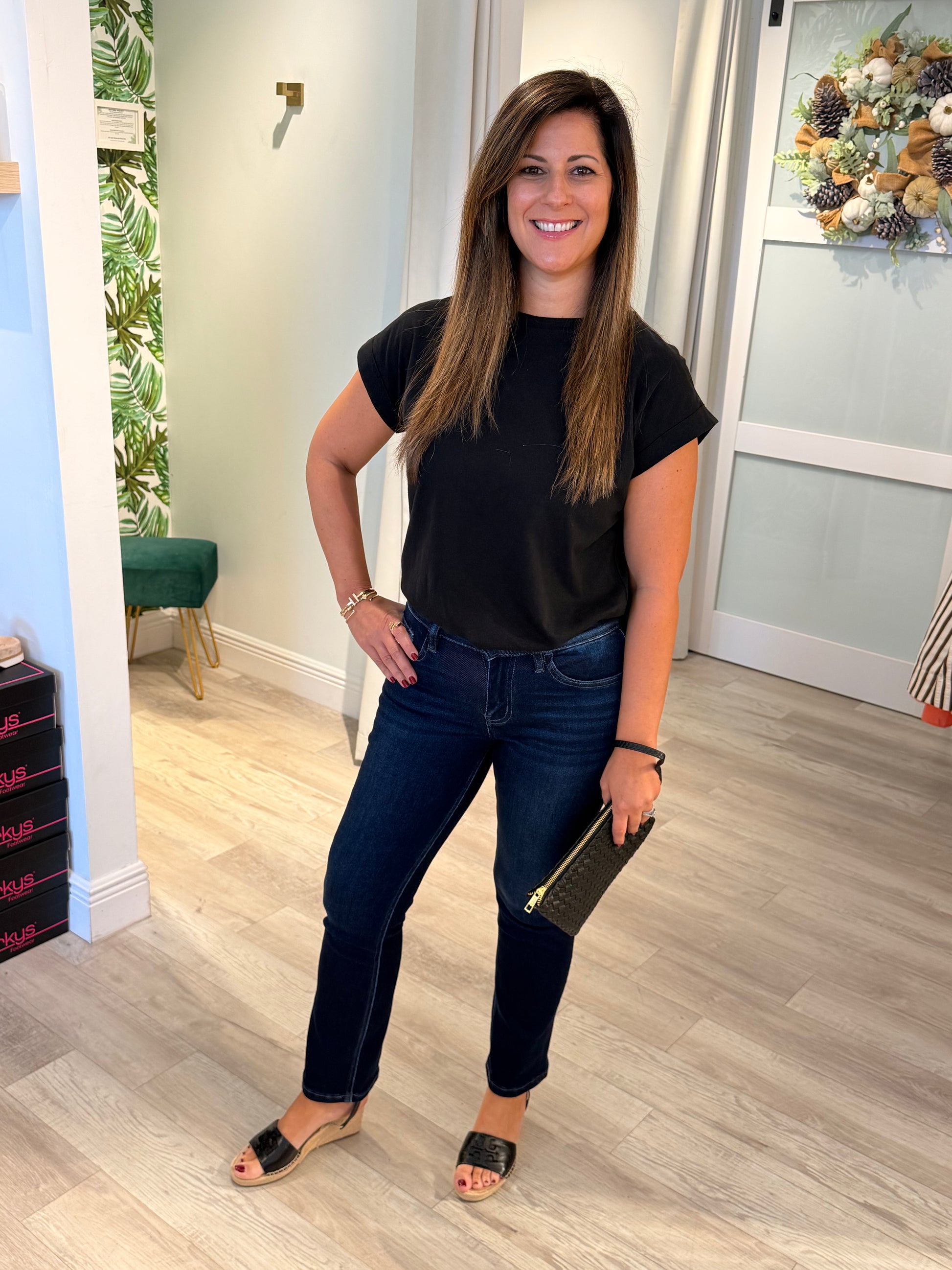 The perfect blend of comfort and classic style. The Carlene Jean features a flattering mid-rise with a slim straight ankle fit that’s versatile for any occasion. Made from a soft yet structured blend of 70% cotton, 27% polyester, and 2% viscose, these jeans offer just the right amount of stretch for everyday wear. With a clean, no-distress design and original hem, they’re a timeless staple you’ll reach for again and again—easy to dress up with heels or keep casual with your favorite sandals or heels.