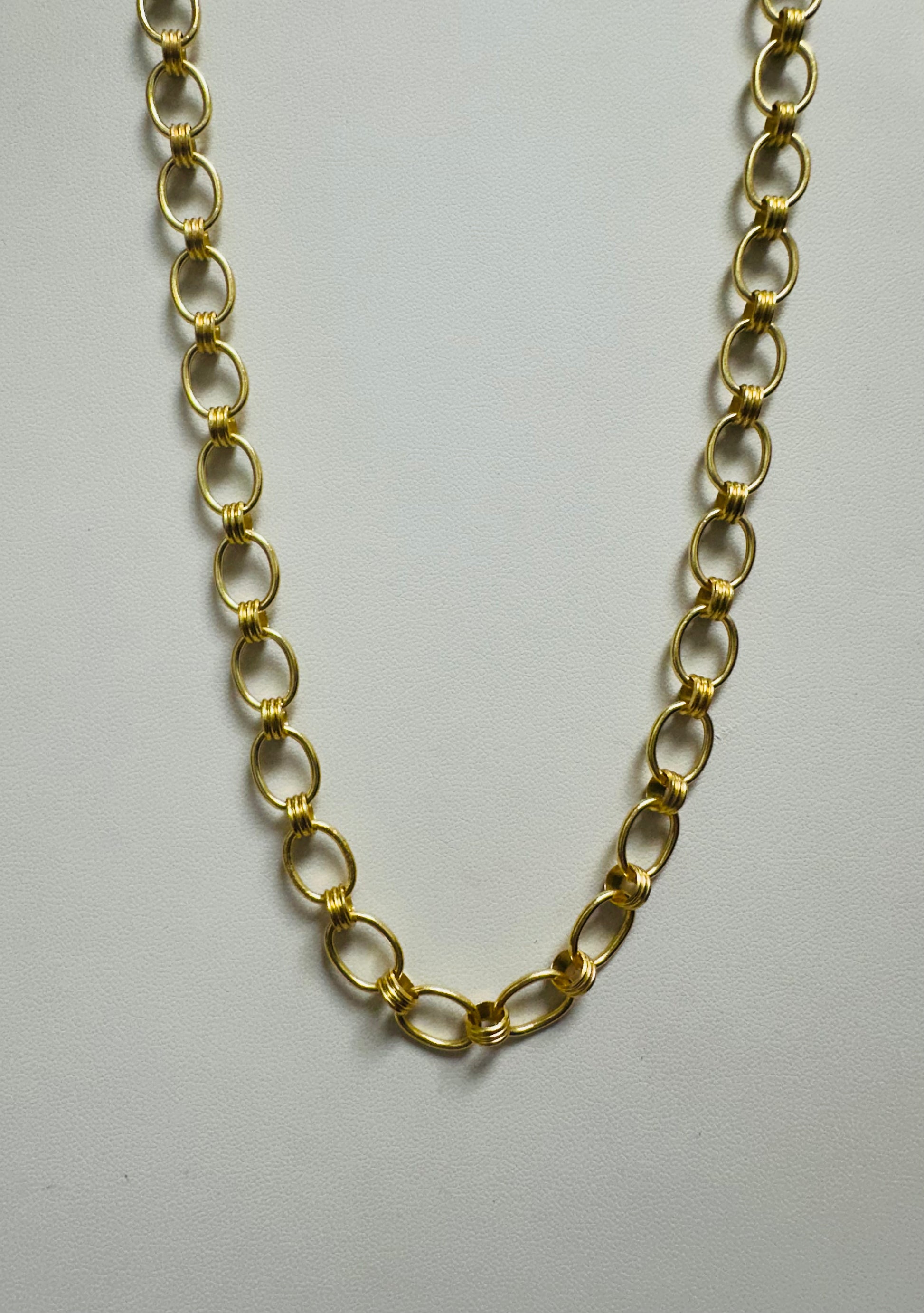 Crafted with precision, the Matte Oval Link chain features an 18k gold triple-dipped finish ensuring lasting shine and durability. Its versatile oval links allow it to be worn alone for a sleek, minimalist look or paired effortlessly with matte gold pendants or charms to reflect your personal style. The magnetic clasp provides secure, convenient wear, combining elegance with practicality for everyday use.