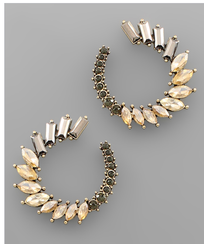 Elevate your evening look with stunning multi stone earrings. Adorned with black, gray, and champagne stones, these earrings will add a touch of elegance to any night out. Perfect for dressing up any outfit, these earrings are a must-have for any stylish wardrobe.