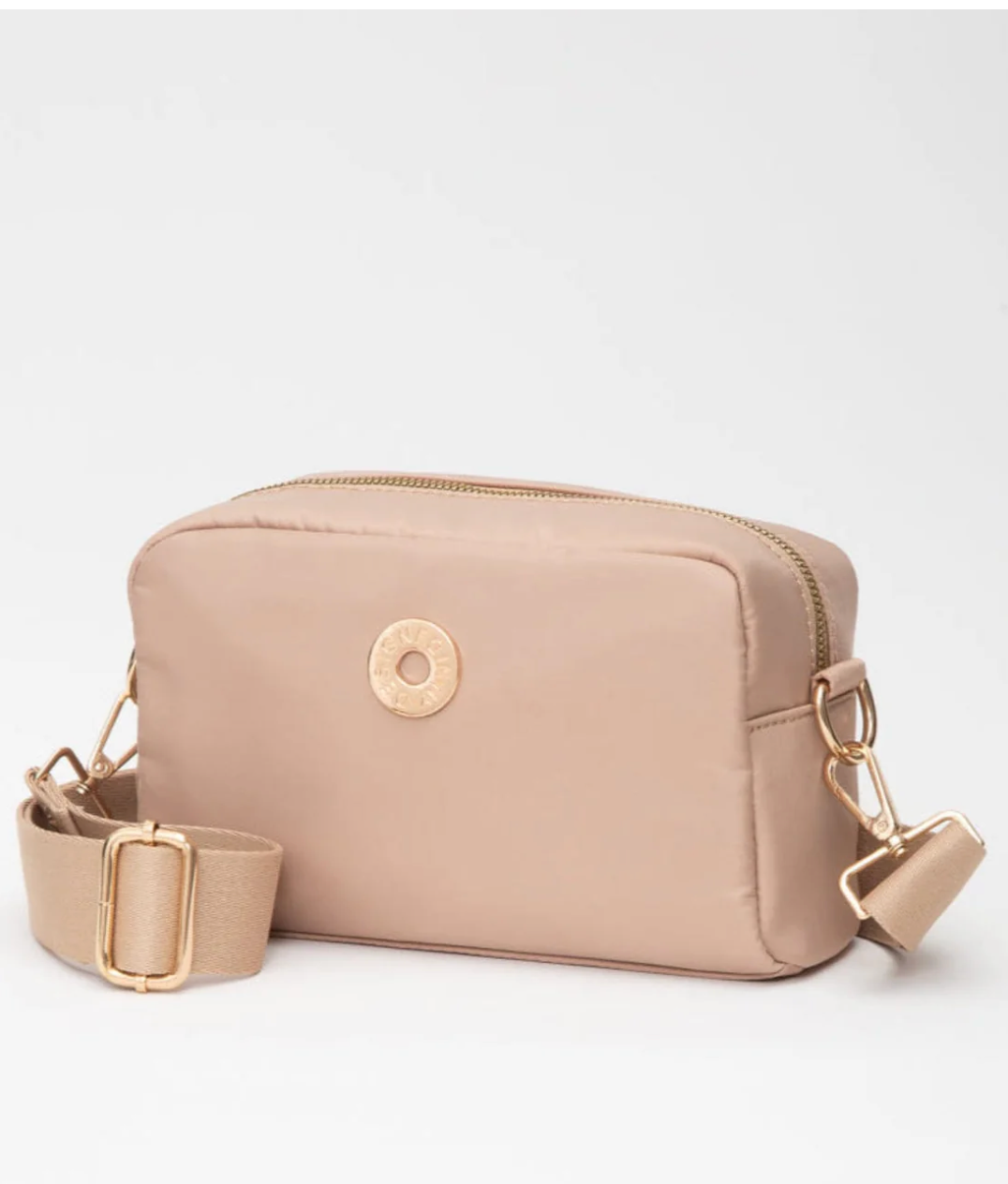 The Nylon Crossbody Bag combines practical functionality with refined style. Crafted from lightweight nylon, this compact crossbody measures 9" x 3.5" x 5.5" and features a removable, adjustable strap that adapts to your preferred carry method. The secure zip closure protects your essentials, while an interior slip pocket keeps smaller items organized. Polished gold hardware adds a touch of sophistication to the sleek design. Ideal for daily errands, travel, or weekend outings, this versatile bag keeps your hands free without compromising on elegance.
