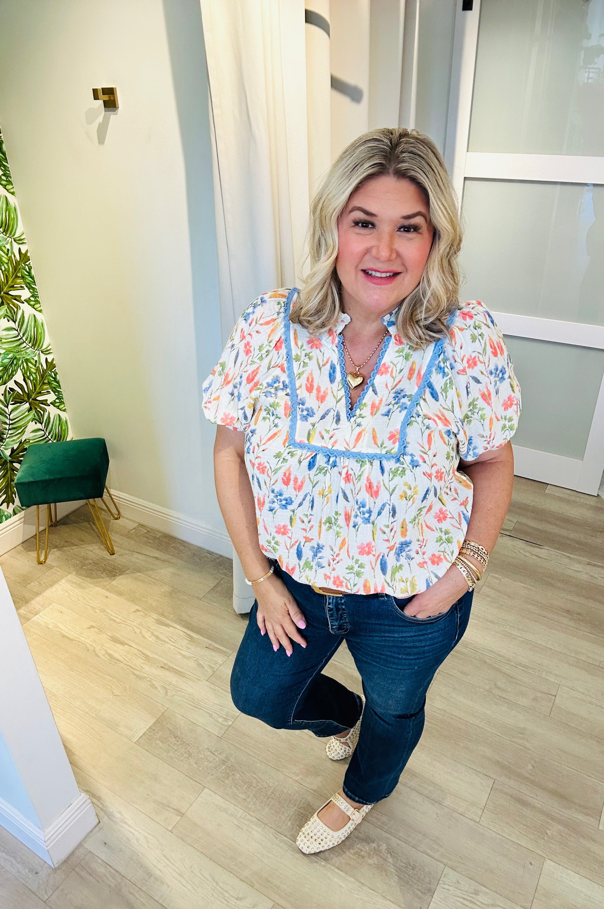 Soft, feminine, and naturally beautiful—the Pastel Meadow Top is prepared to be admired.