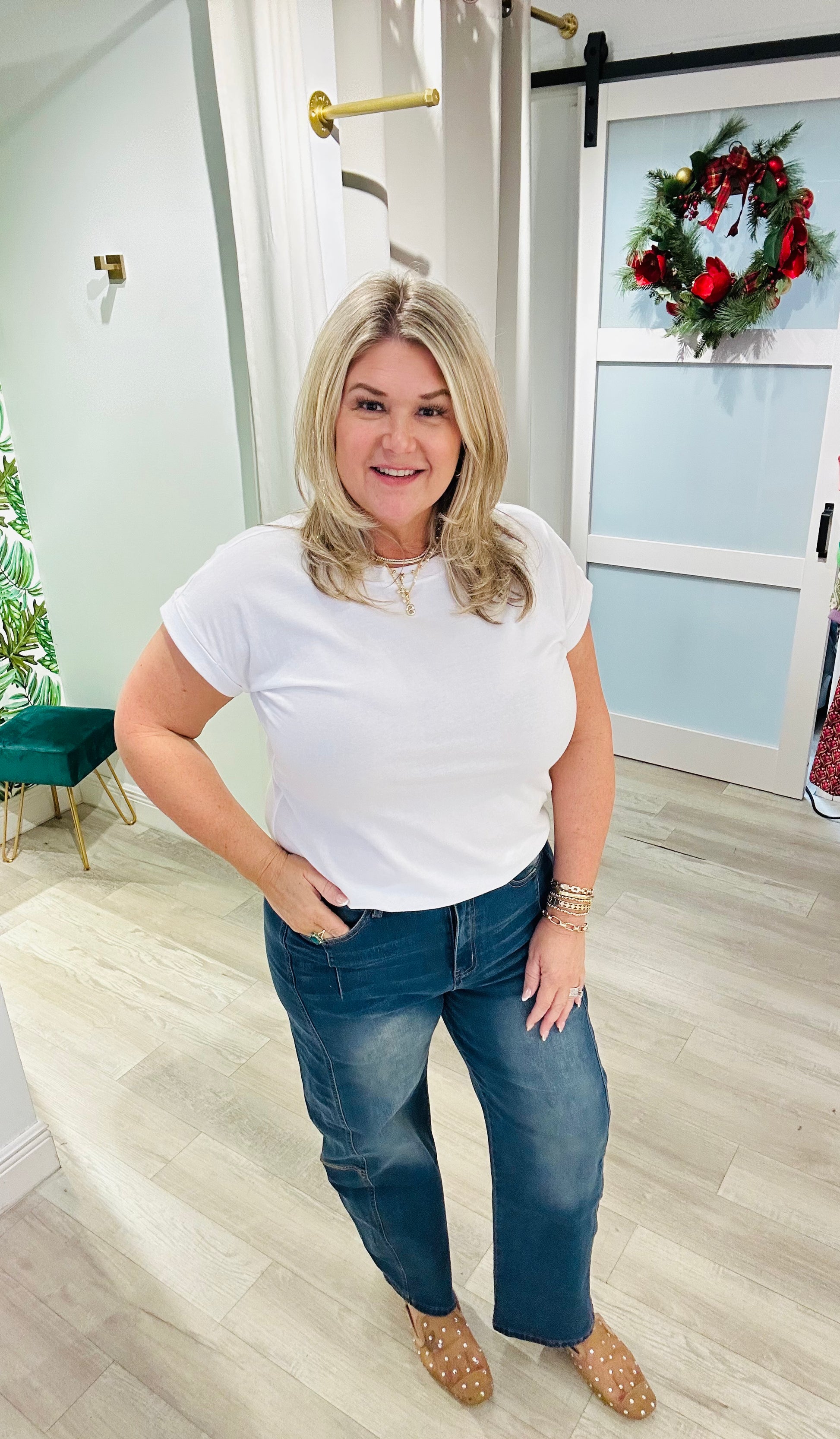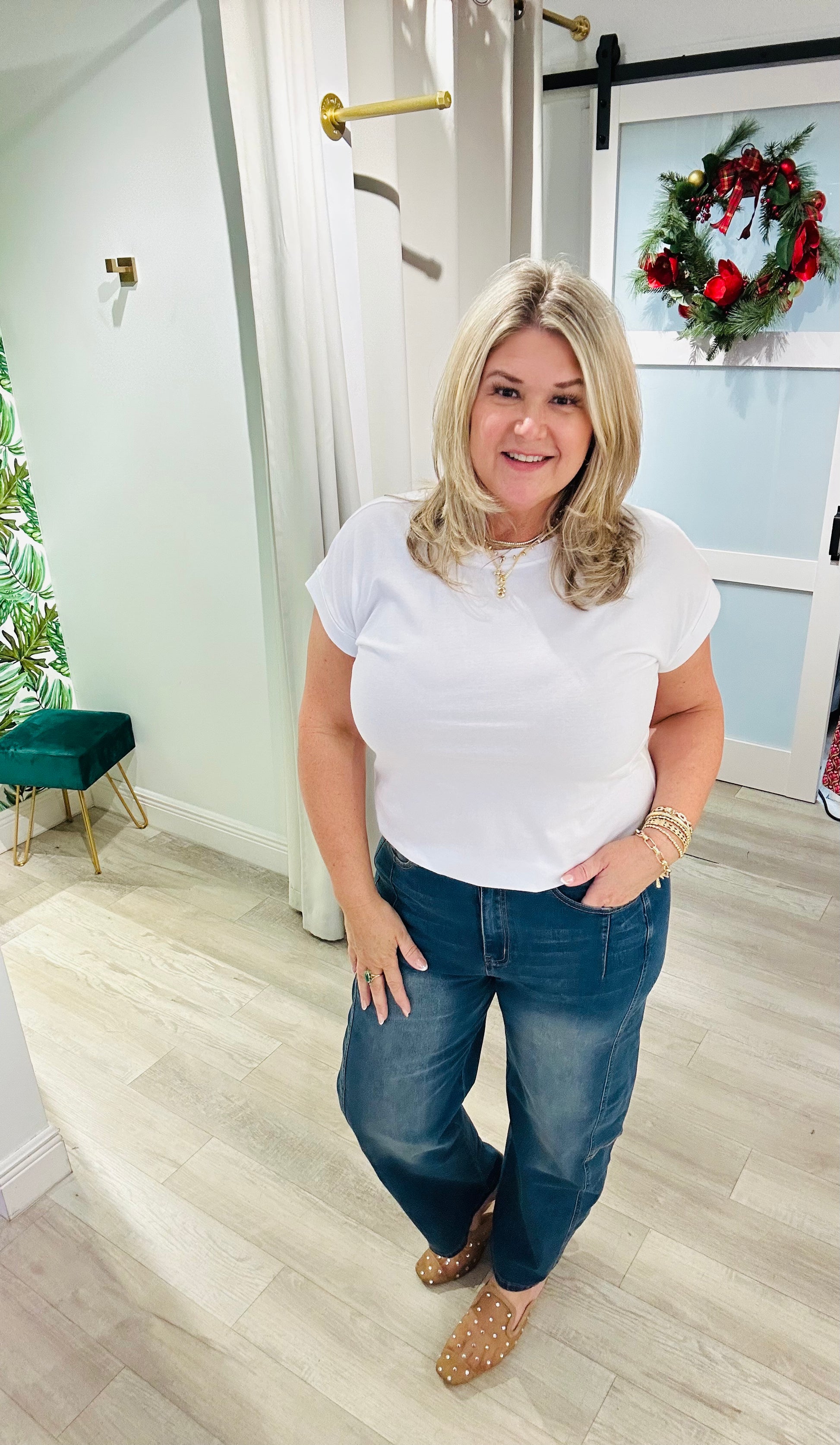 Meet the jeans you’ll never want to take off. Our Stretch Barrel Jeans are designed with a relaxed barrel-leg silhouette that feels modern, flattering, and incredibly comfortable. Made with super-stretch denim, these jeans move with you while keeping their shape all day long. The mid-rise fit hugs comfortably through the waist and hips, then eases into that effortless barrel shape for a laid-back yet polished look. Perfect for everyday wear—dress them up with a blouse or keep it casual with a tee and sneakers.