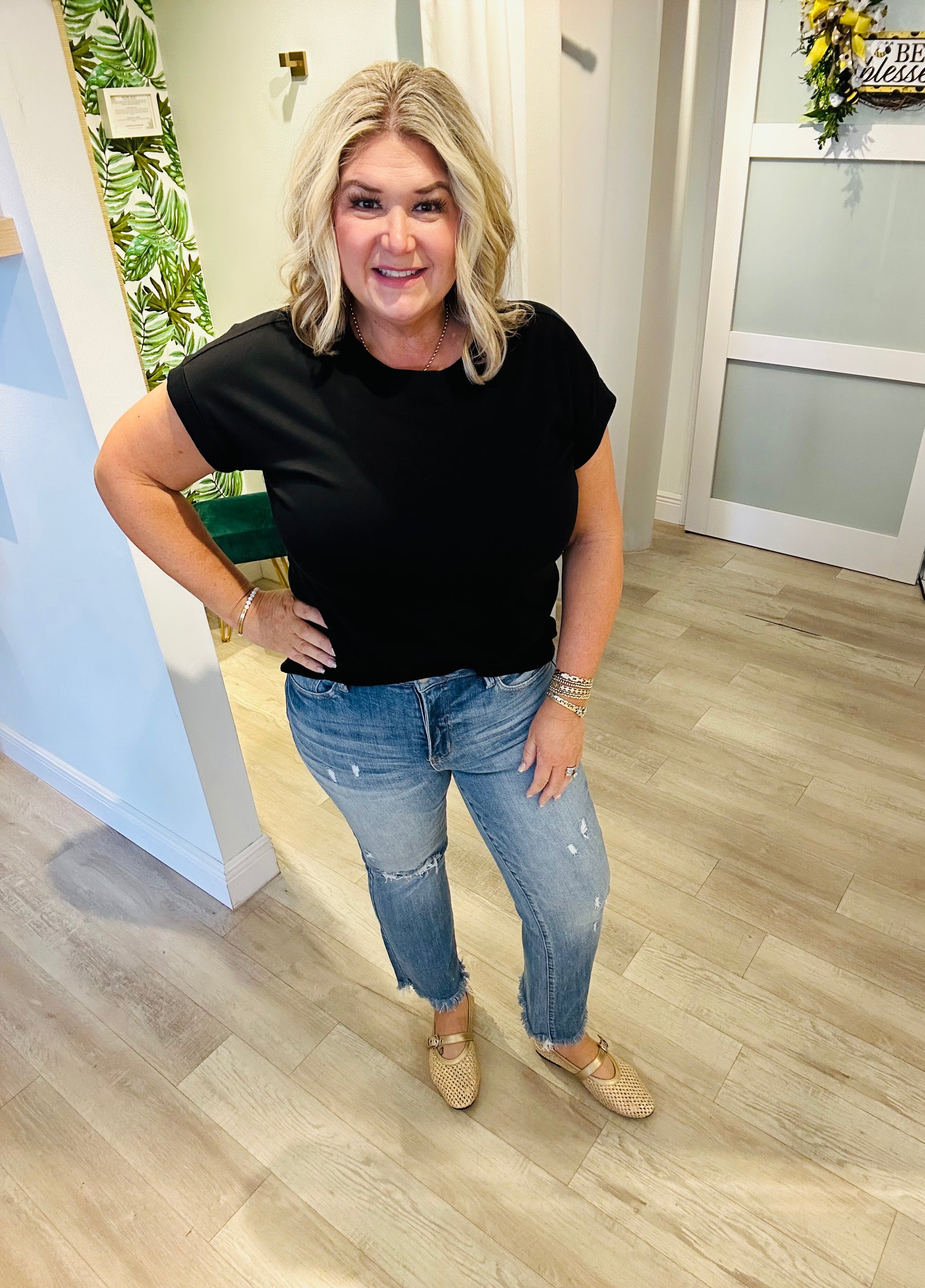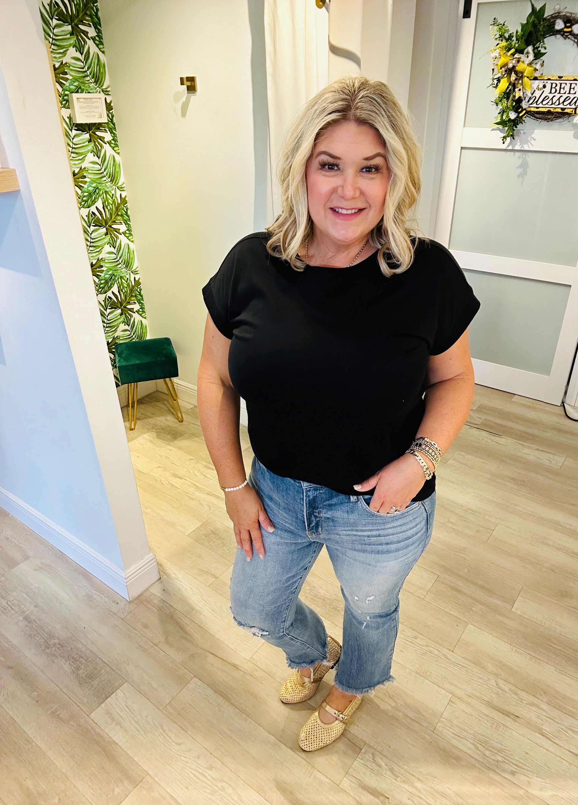 A lightly distressed wash and frayed hemline add just the right amount of edge, making these jeans easy to dress up or keep casual. Pair them with your favorite tees, blouses, or sweaters — they’re the denim you’ll reach for again and again.