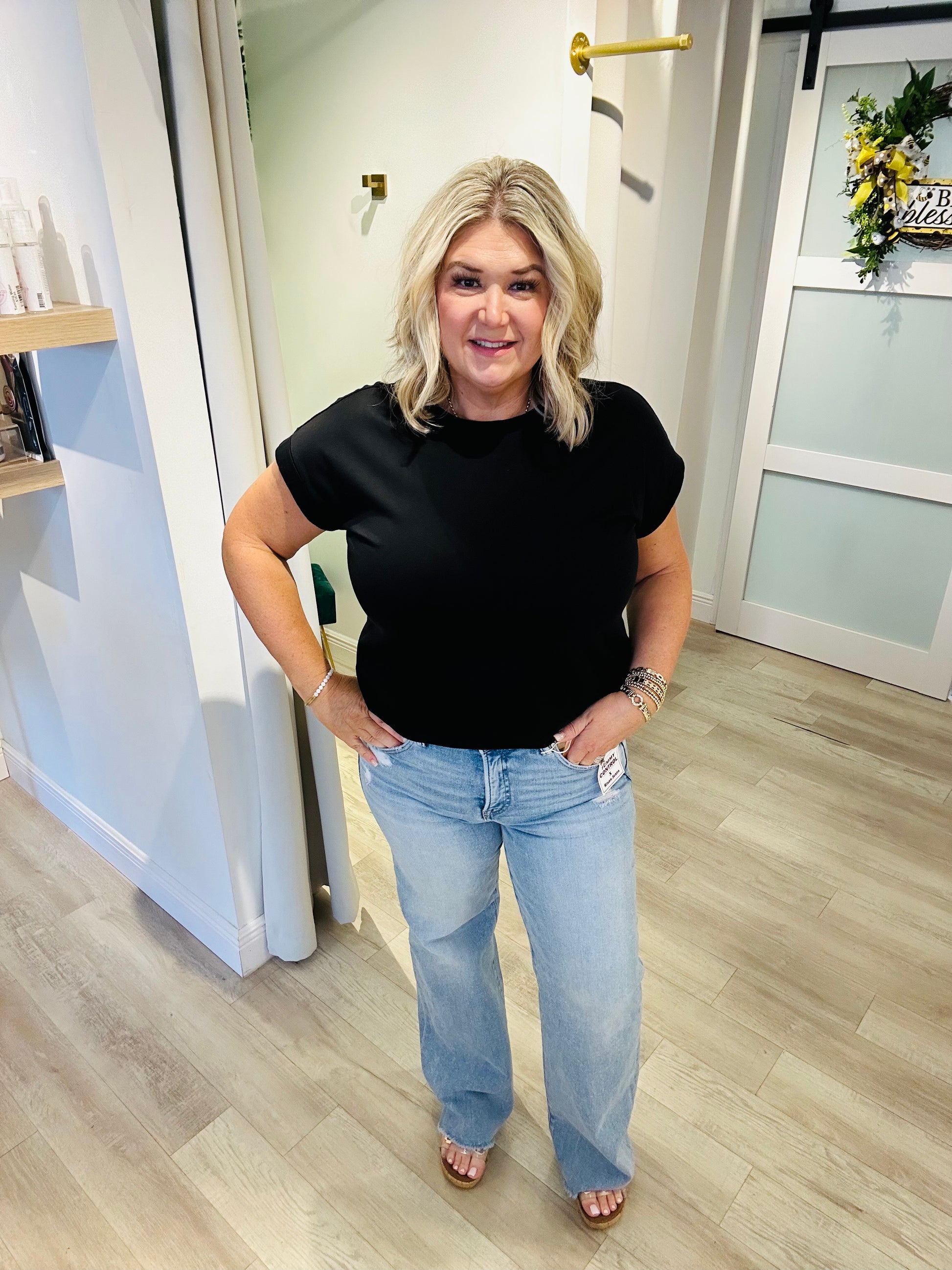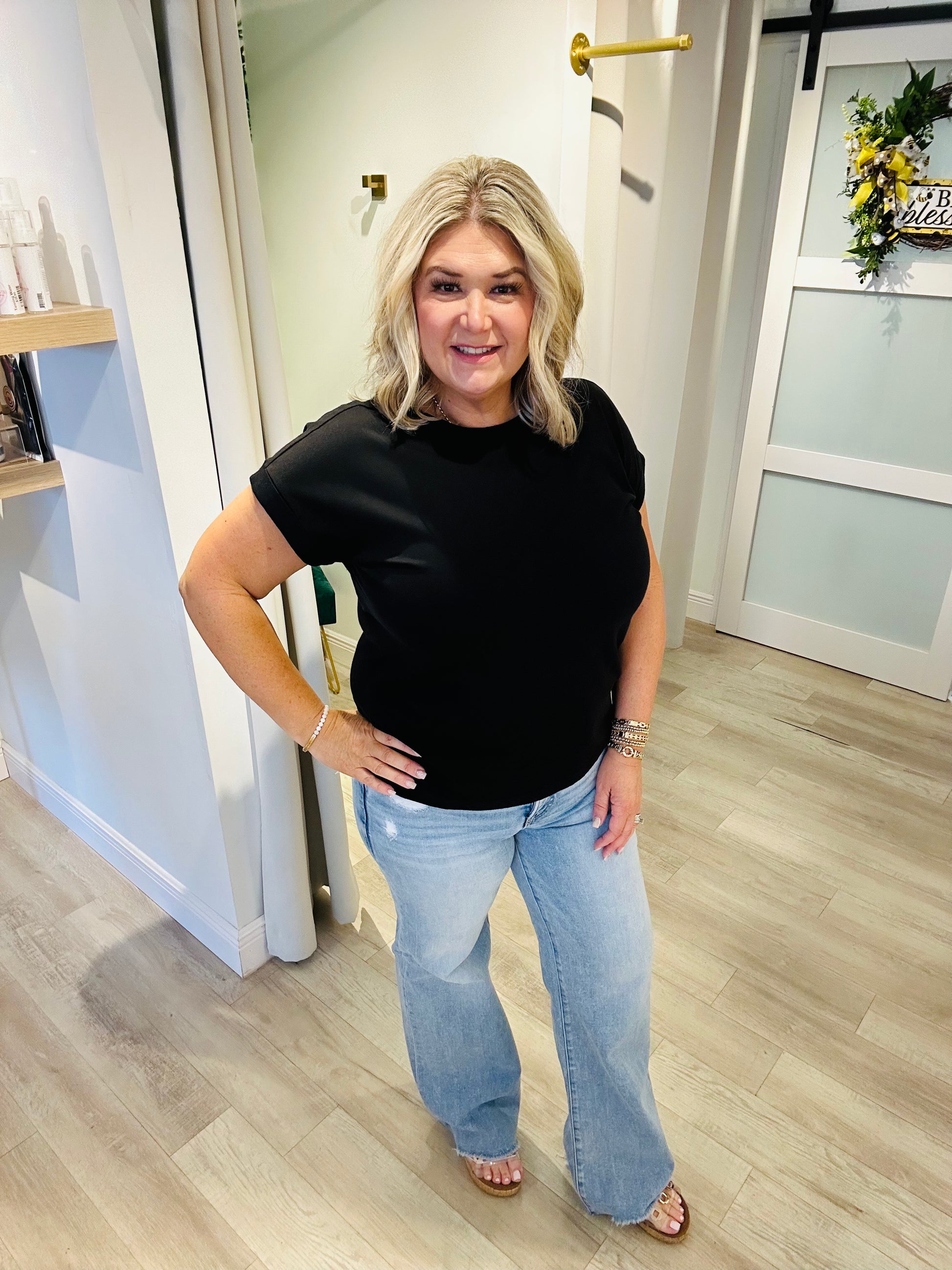 The wide-leg straight silhouette creates a long, lean line—perfect for pairing with your favorite tees, blouses, or a chic front tuck. Finished with a 33-inch inseam, it’s the ideal length for sandals, wedges, or sneakers.